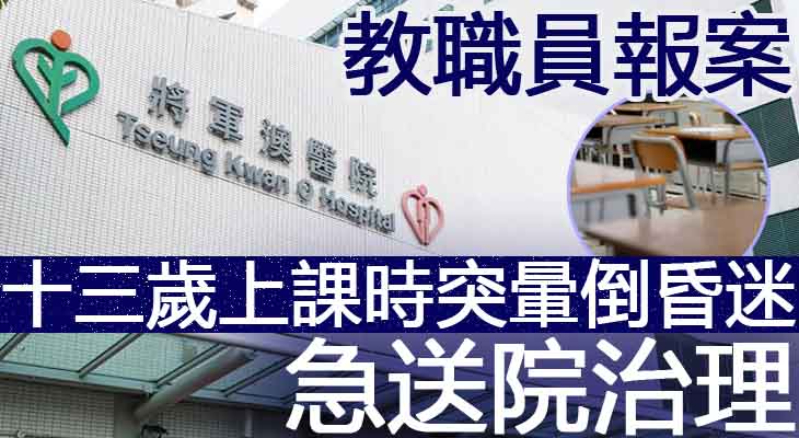將軍澳有女學生上課時暈倒。警方接獲唐賢里一間學校職員報案,指一名13歲女學生於上課期間暈倒。