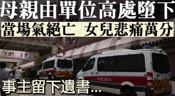 警方接獲一名女子報案,指其姓陳(83歲)母親於荃灣中心天津樓一單位墮下。