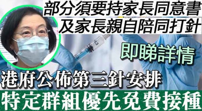 【部分須要持家長同意書及家長親自陪同打針】港府公佈第三針安排 特定群組優先免費接種