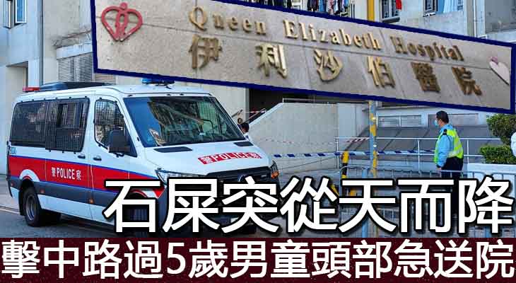 早前本港發生墮物傷人案。當日中午12時許,警方接獲報案,指一塊面積約30厘米乘1米的石屎從天而降,擊中一名路過的5歲男童頭部。
