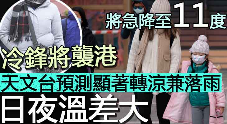 【將急降至11度】冷鋒將襲港 天文台預測顯著轉涼兼落雨 日夜溫差大