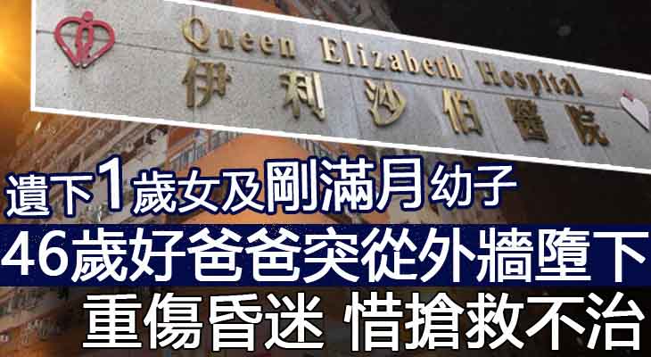 紅磡發生一宗致命工業意外,昨日下午約5時30分,其中一名男工突從10樓外牆墮下,跌落大廈天井平台重創受傷,昏迷不醒,由救護車送到伊利沙伯醫院搶救不治。
