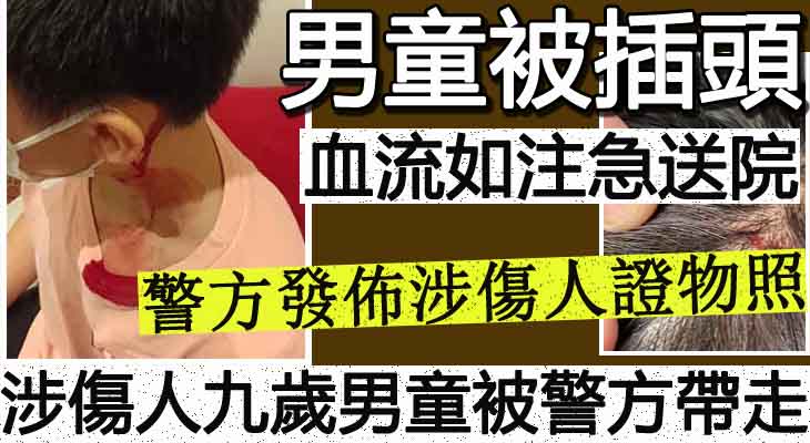 【警方發佈涉傷人證物照】男童被插頭血流如注急送院 涉傷人九歲男童被警方帶走