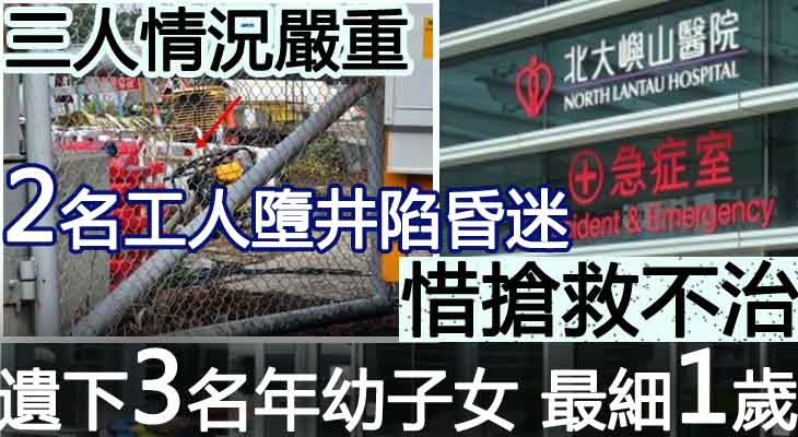 今早9時38分,警方接報指赤鱲角駿群路,有2名男工人不慎墮污水井,大聲呼救。救援人員到場將2人救起時已呈昏迷,現場瀰漫懷疑沼氣異味,有3名男工人欲救人時,因吸入沼氣不適,送院治理,情況嚴重。現場消息指工地懷疑泄漏硫化氫。