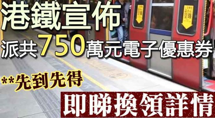 港鐵MTR Mobile宣佈派發共750萬元、3萬張200元或500元電子優惠券,包括港鐵商場200元指定類別電子優惠券(名額:25,000)及港鐵商場500元時裝及美容電子優惠券(名額:5000)。
