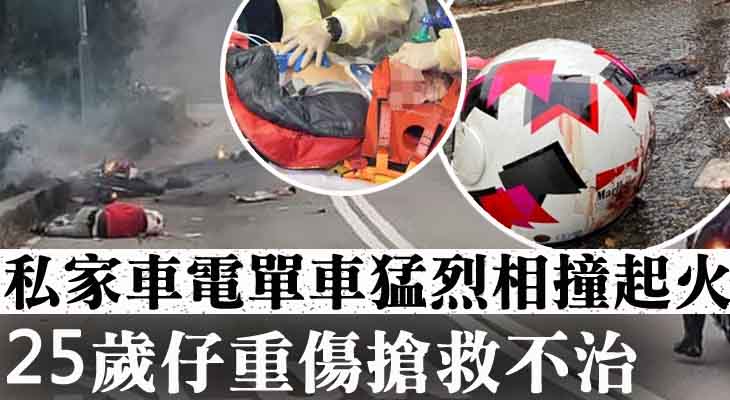 【私家車電單車猛烈相撞起火 25歲仔重傷搶救不治】