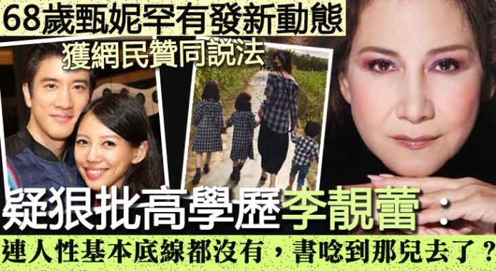 有網民認同甄妮說法,甄妮再寫道:「若怨世就到別的星球去,這裡已經很苦了,不是只有你一人可憐,夠了!」