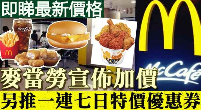 2021年4月2日麥當勞平均加價1.4%,今次則平均加價2%,麥當勞全線主餐廳及McCafé的主要產品均加價1元,包括已凍價5年的11元魚柳飽、凍價3年的25元6件麥樂雞餐、凍價6年的14元醒神超值選麥芝蛋飽餐全部加1元,套餐換飲品另再加5毫,麥炸雞分享桶及其套餐則加3元。