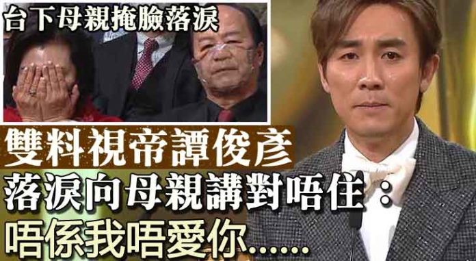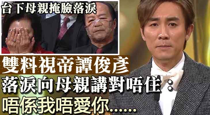 「最後特別想同媽媽講對唔住,呢幾年我好少打電話畀你,唔係我唔愛你,而係姓譚男人有咩都放在心中,媽咪 I love you!爸爸上星期我個仔在學校比賽攞獎,我開心過自己攞獎,好榮幸在呢度帶呢份喜悅畀你,最後多謝老婆和子女,I love you all,你哋係我全部,冇你我唔會攞到獎,I love you,我會不忘初心。」