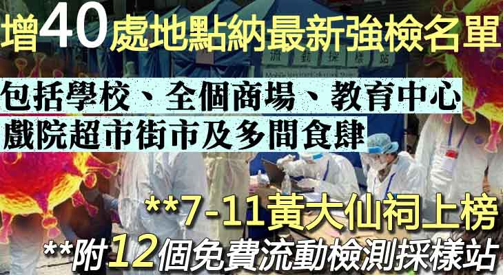 【7-11黃大仙祠上榜】增40處地點納最新強檢名單 包括學校商場教育中心戲院超市街市及多間食肆