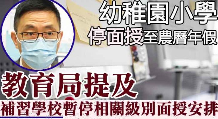 為遏制Omicron疫情,教育局昨日(11日)宣佈全港小學、幼稚園及幼稚園暨幼兒中心(包括提供非本地課程的學校)必須在星期五(14日)或之前暫停面授課堂及所有校內活動,當中包括取消或延期舉行考試及其他校園活動,直至學校農曆新年假期完結為止。