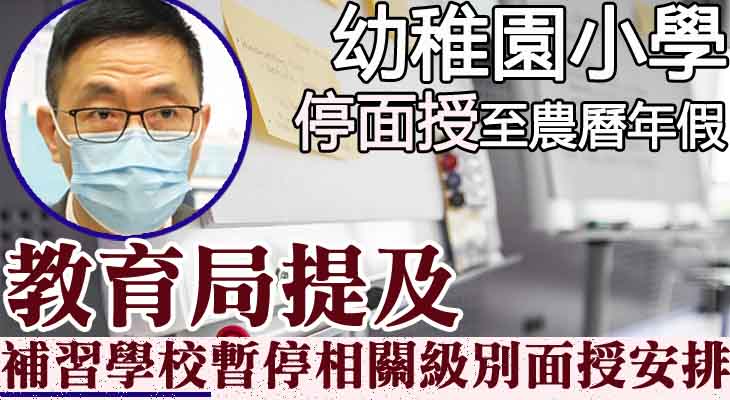 至於提供非正規課程的私立學校(一般稱為補習學校),則暫停相關級別的面授課堂至下月7日(2月7日)止。至於中學在現階段仍會繼續面授課堂的安排。