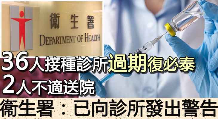 近日有市民投訴被接種了過期復必泰疫苗,其中有2名市民感不適要送院治理,共36人受影響。