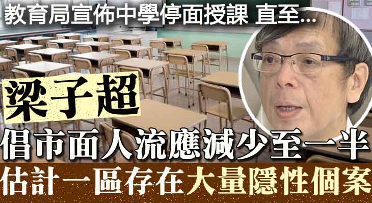 呼吸系統專科醫生梁子超於電節目上表示,中學應與早前小學一同暫停面授課。他指若有學校爆疫,不但中學受影響,如不及早採取行動,個案會在學校、家庭及學生社交網絡傳播,令疫情迅速擴散。