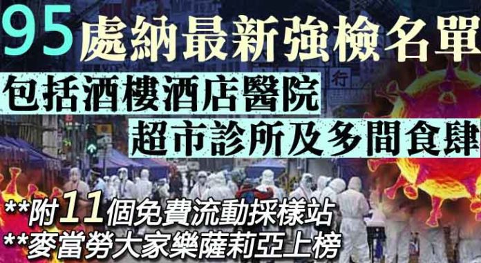 政府今日會於葵涌邨內多個地點(確實位置以現場安排為準)增設流動採樣站及於下列地點重開流動採樣站,為須接受強制檢測的人士提供免費服務: