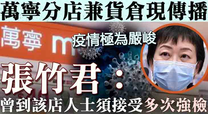 張竹君表示,葵興萬寧2名職員確診,其中1人居於葵涌邨逸葵樓;所有員工須接受檢疫,曾到商店人士須強檢多次。