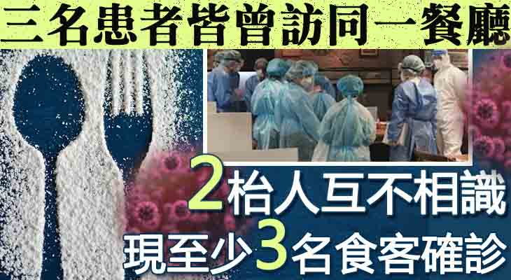 張竹君表示有3名市民在本月中到訪一間餐廳後感染新冠肺炎。3名患者分別來自2枱食客,且2枱皆互不相識。