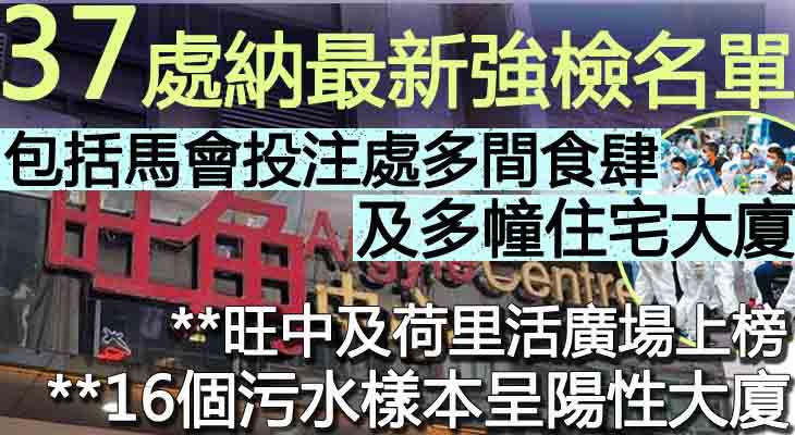 【附3個免費流動採樣站】50處納最新強檢名單 包括超市銀行診所食肆多間學校及多幢住宅大廈 http://mybblink.online/k/7Qe3J