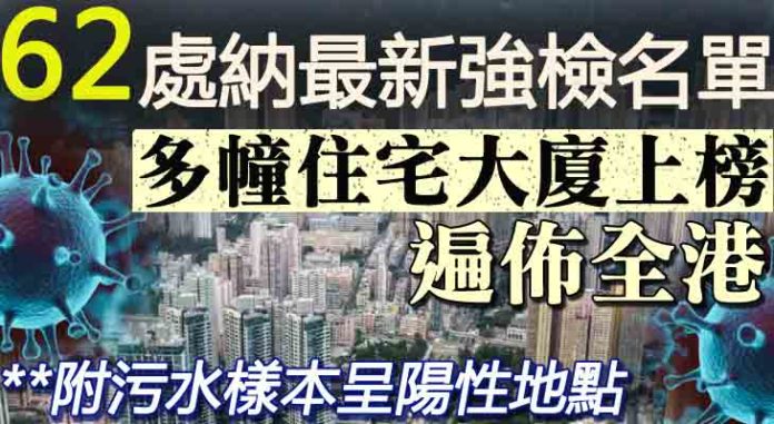【附污水樣本呈陽性地點】62處納最新強檢名單 多幢住宅大廈上榜 遍佈全港
