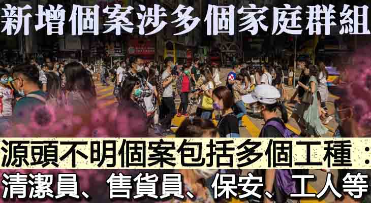 張竹君稱,確診個案大多涉及不同家庭群組,估計跟農曆新年前後、吃開年飯等有關,至於不明源頭個案則涉及接觸多人的行業,包括清潔員、售貨員、保安、工人等。