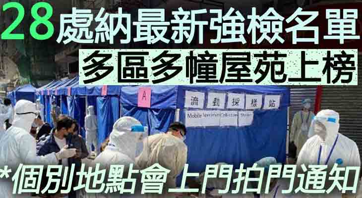 【個別地點會上門拍門通知】28處納最新強檢名單 多區多幢屋苑上榜