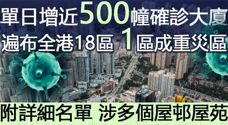 【附詳細名單 涉多個屋邨屋苑】單日增近500幢確診大廈 遍布全港18區 1區成重災區