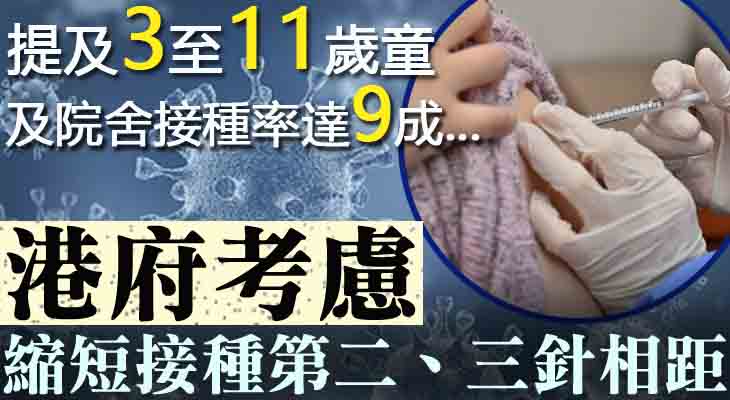 行政長官林鄭月娥今日會見傳媒宣佈,她表示在疫苗接種率方面,諮詢多名專家後,因疫情危急,預計衞生署會公布縮短接種第二針、第三針疫苗6個月相距時長。