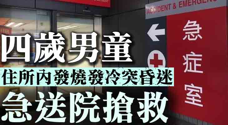 今日(24日)凌晨零時05分,警方接報指,荃灣梨木樹邨樂樹樓一單位內一名4歲男童,發燒及發冷,突然昏迷。