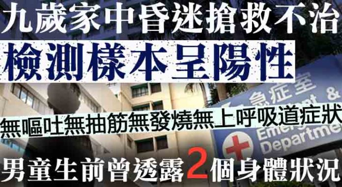 他續指,男童當初曾表示疲累及胃口差,沒有嘔吐、抽筋、發燒及上呼吸道症狀,亦無接觸新冠肺炎患者,入院前沒有接受檢測,在家情況轉差後,家人已為其急救。