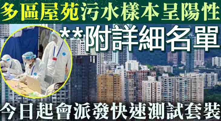 【附詳細名單】多區屋苑污水樣本呈陽性:今日起會派發快速測試套裝