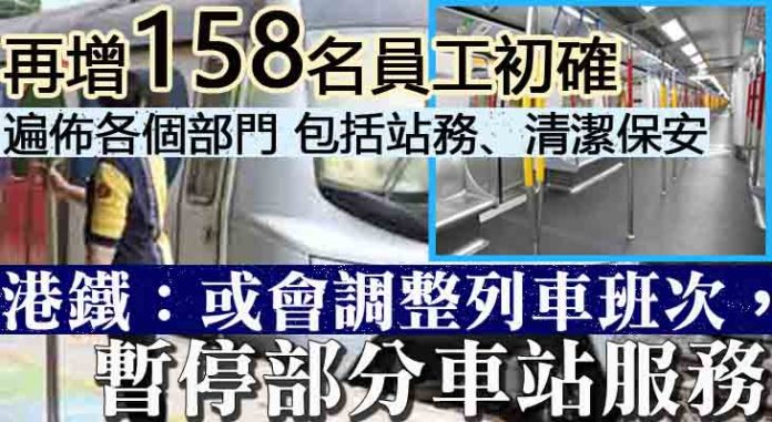 【再增158名員工初確 遍佈各個部門 包括站務、清潔保安】港鐵:或會調整列車班次,暫停部分車站服務