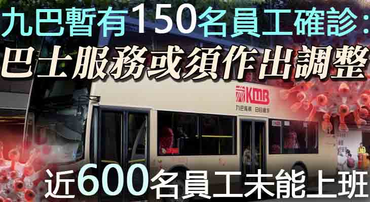 本港第五波疫情極之嚴峻。九巴表示,截至昨日(25日)下午,公司共錄得150多宗確診個案,涉及車長、維修人員等。