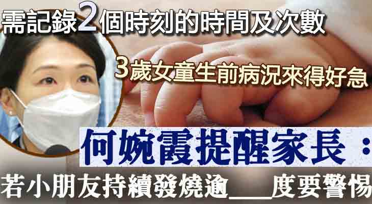 何醫生提醒家長們要注意孩子的徵狀,幼童如輕燒,家長應每4小時量度體溫,亦需為染疫幼童記錄出入廁所及進食的時間及次數。