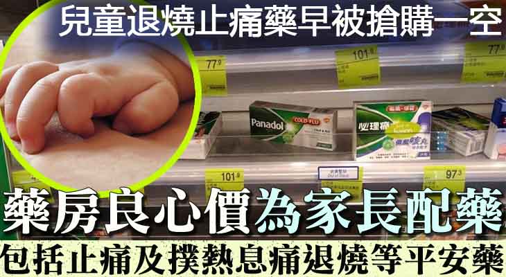 很多家長都為小朋友購買兒童退燒藥及止痛藥,多間藥房有關藥物都早已被搶購一空,供不應求。