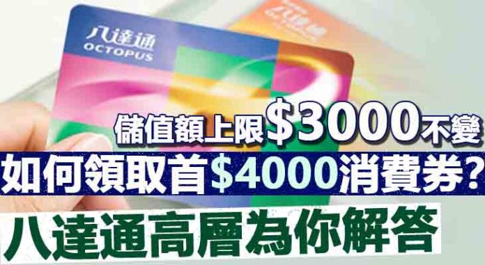 八達通卡公司表示,八達通的儲值額上限仍然是3000元,市民下月領取消費券時,無法一次過領取4000元,需要分批領取,但次數不限。