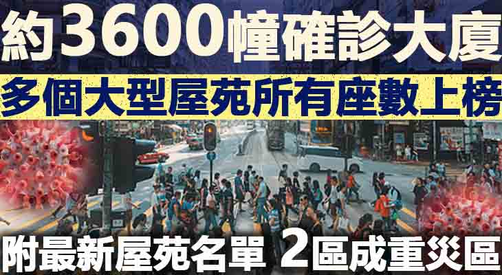 衞生署公布截至本月16日曾有確診或疑似2019冠狀病毒病個案的大廈名單,當中共有約3600幢大廈上榜。其中深水埗佔最多,約有330幢;其次為觀塘,約有310幢。