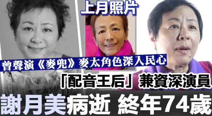 著名配音員兼資深演員謝月美(May姐)昨天(25日)在醫院病逝,終年74歲。好友關寶慧在社交平台上載May姐的黑白照……