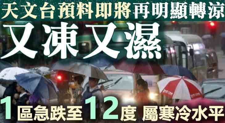 【1區急跌至12度 屬寒冷水平】天文台預料即將再明顯轉涼 又凍又濕