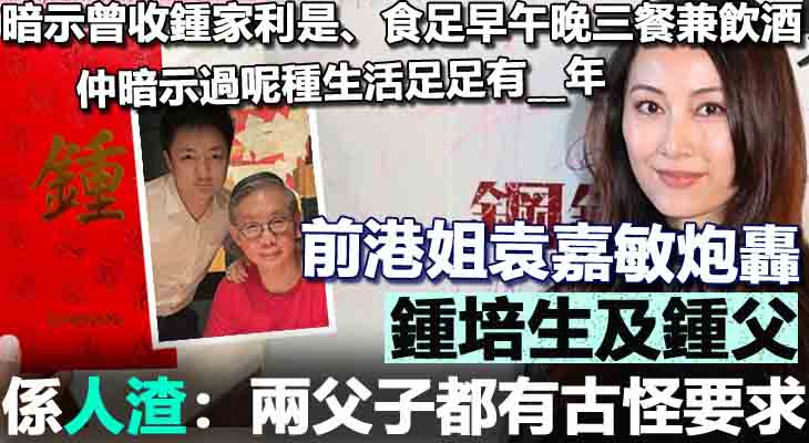 【暗示曾收鍾家利是、食足三餐兼飲酒】前港姐袁嘉敏炮轟鍾培生及鍾父係人渣:兩父子都有古怪要求