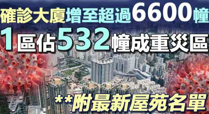 其中元朗區成為18區重災區,有532幢上榜;其次為東區,有497幢;排列第三的則是有481幢確診大廈的九龍城。