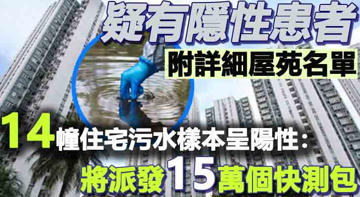 政府表示,為應對嚴峻的新冠疫情,環境保護署與渠務署連同香港大學跨學科團隊近日已加強在各區採集污水樣本進行冠狀病毒檢測,並發現於多個地區檢測到污水呈陽性的結果,顯示該地區的處所可能有隱性患者存在。