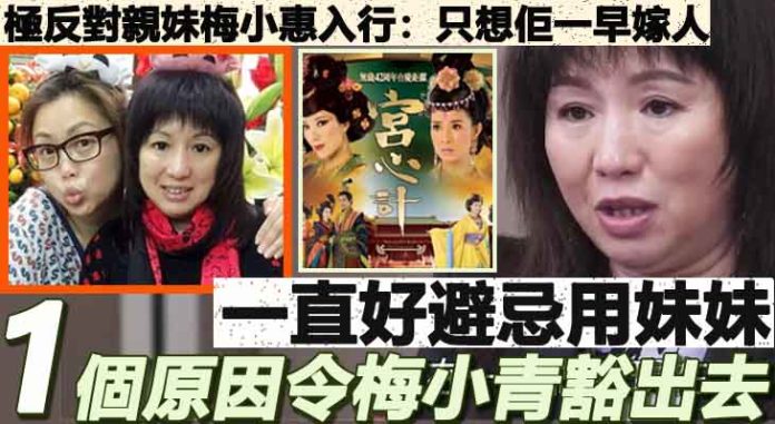 眾所周知,藝人梅小惠就是她的孻妹,梅小青接受電台訪問,她透露原來當年極反對親妹小惠入行。那時身在亞視的她坦言事前亦不知妹妹參選TVB健美小姐……