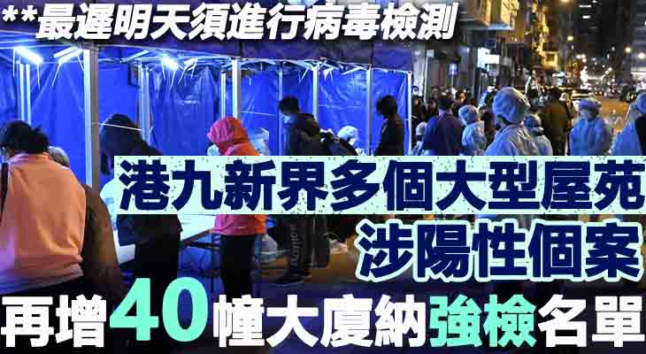 【最遲明天須進行病毒檢測】80幢大廈納強檢名單 港九新界多個大型屋苑涉陽性個案 http://mybblink.online/k/4QjBY