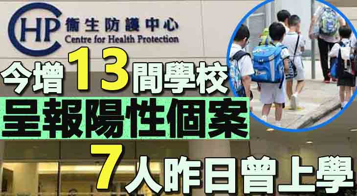 今增13宗學校呈報個案,涉及10名學生及3名教師。另增7宗死亡個案,第5波截至目前共有9,061名死者。