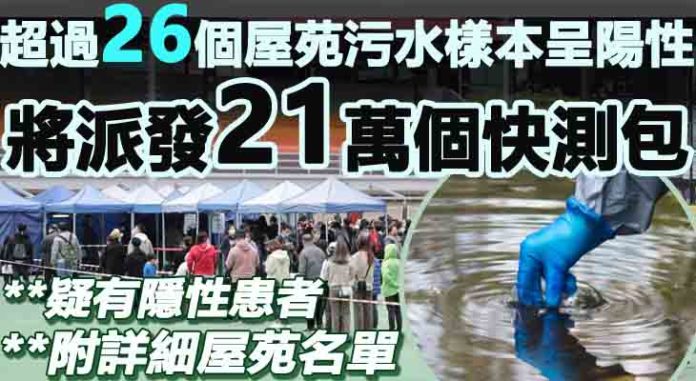 政府表示,為應對嚴峻的新冠疫情,環境保護署與渠務署連同香港大學跨學科團隊近日已加強在各區採集污水樣本進行冠狀病毒檢測,並發現於多個地區檢測到污水呈陽性的結果,顯示該地區的處所可能有隱性患者存在。