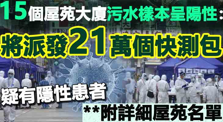 【附詳細屋苑名單】疑有隱性患者 超過26個屋苑污水樣本呈陽性:將派發21萬個快測包 http://mybblink.online/k/j8aQO