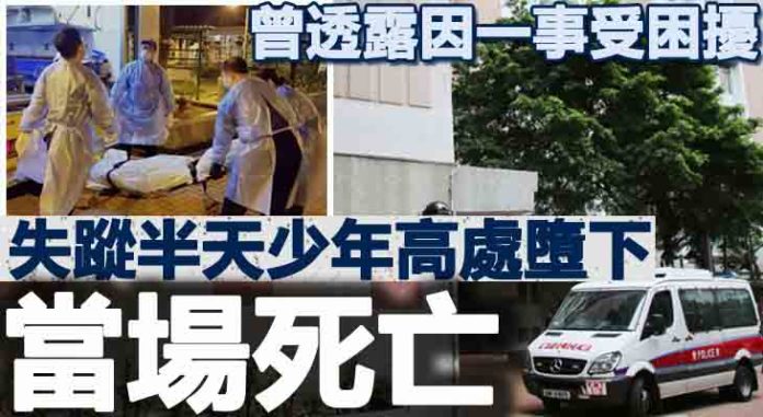 近日發生失蹤人士墮樓案。晚上9時39分,警方接報有一名男子,被發現在葵涌邨夏葵樓墮樓,擱在簷蓬昏迷,救援人員到場證實少年已喪命。