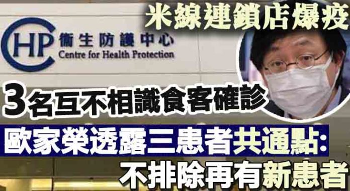 衞生署衞生防護中心傳染病處首席醫生歐家榮於疫情記者會上表示,有3名互不相識的人士光顧東涌富東廣場食肆「譚仔雲南米線」後確診……