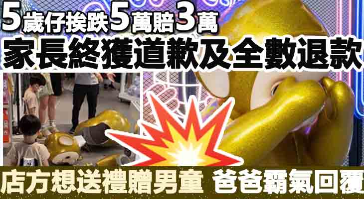 【5歲仔挨跌5萬賠3萬 家長終獲道歉及全數退款】店方想送禮贈男童 爸爸霸氣回覆