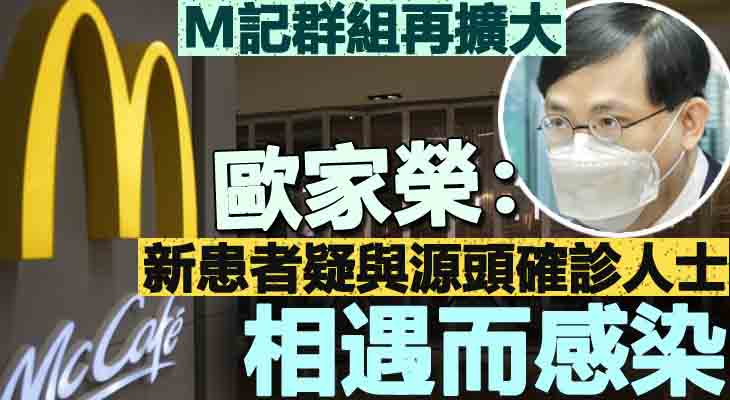 太古城三期麥當勞群組再增1人確診,涉及一名66歲女士,居豐新邨9座,已接種2針。她於5月13日上午11時半至12時半與2名親人光顧,5月17日發病,同日快測呈陽性,目前同住及同行家人均為陰性。